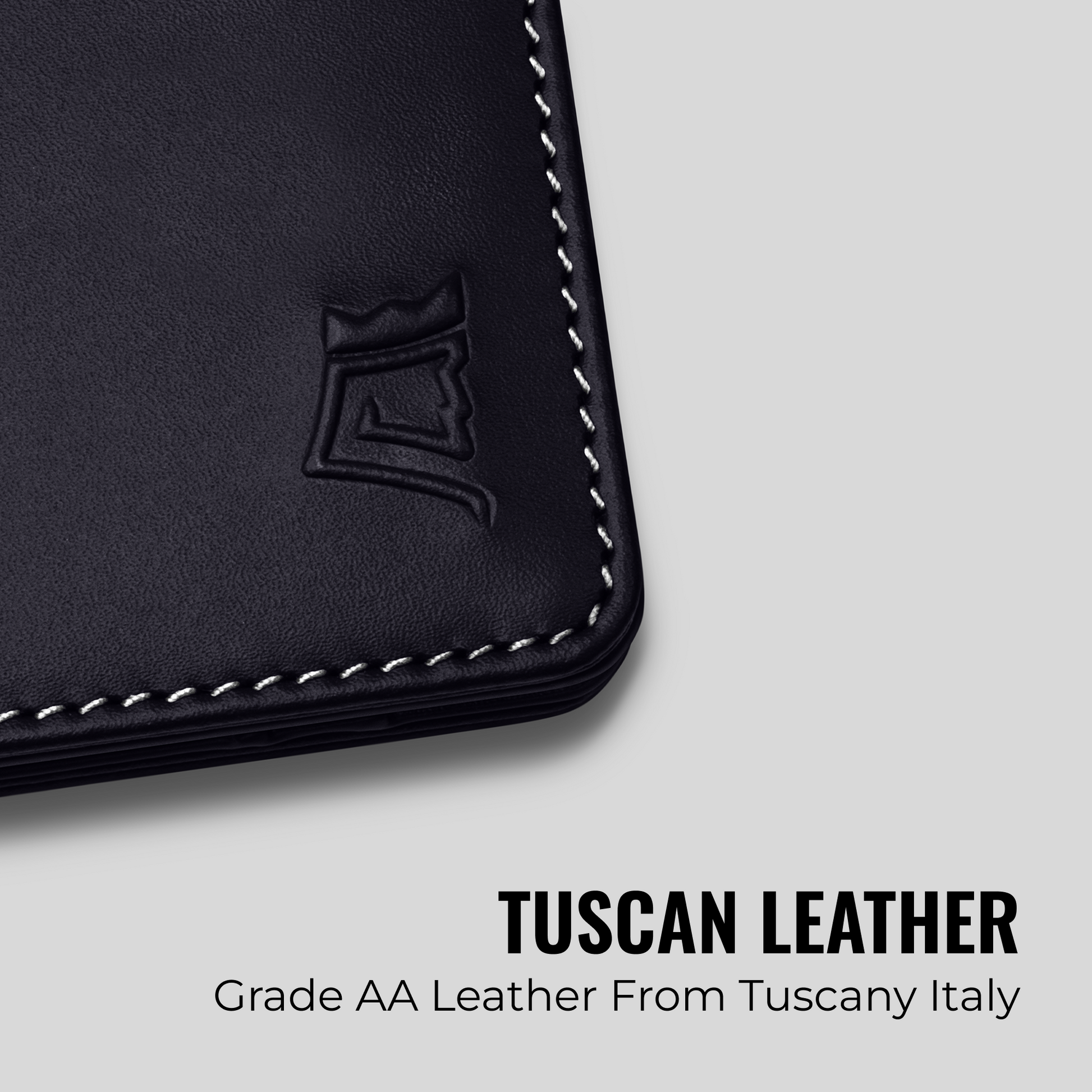 Tuscan leather. Slim design. Lifetime guarantee that protects you for life.