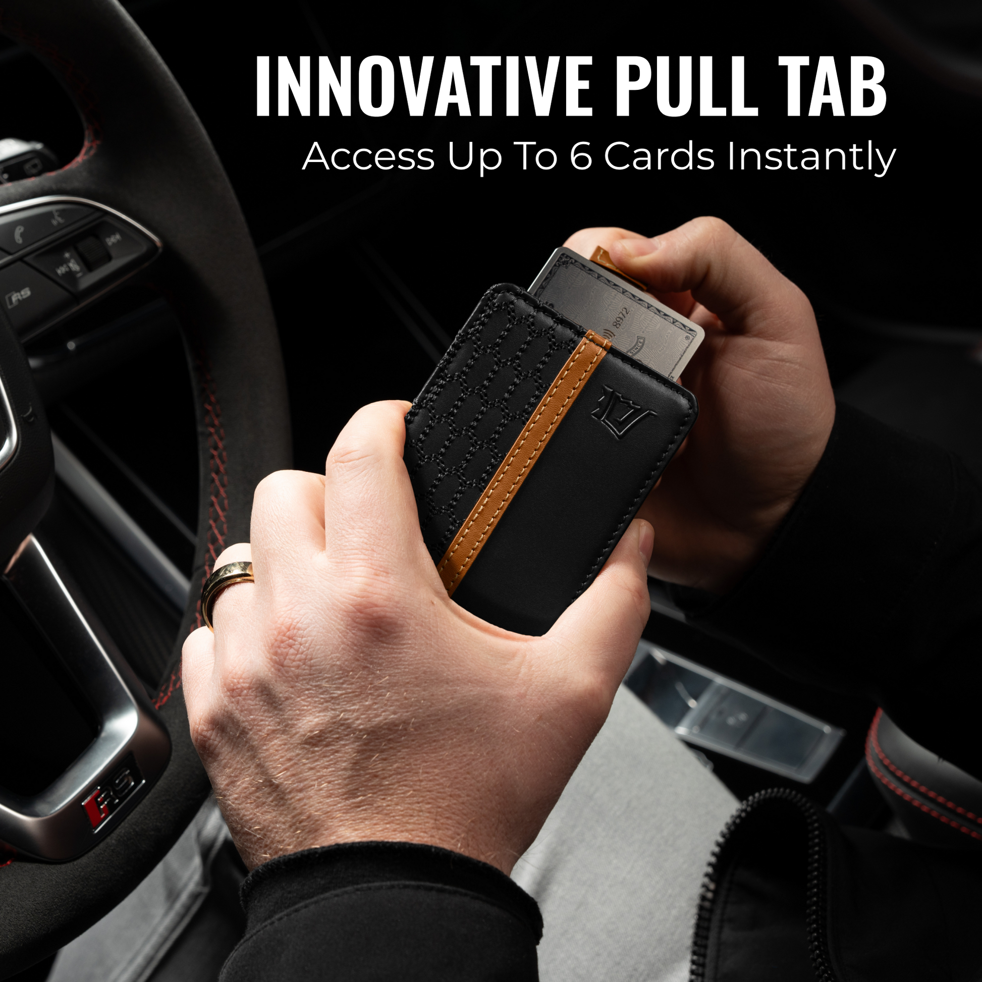 • Quick-access pull tab for your most-used cards