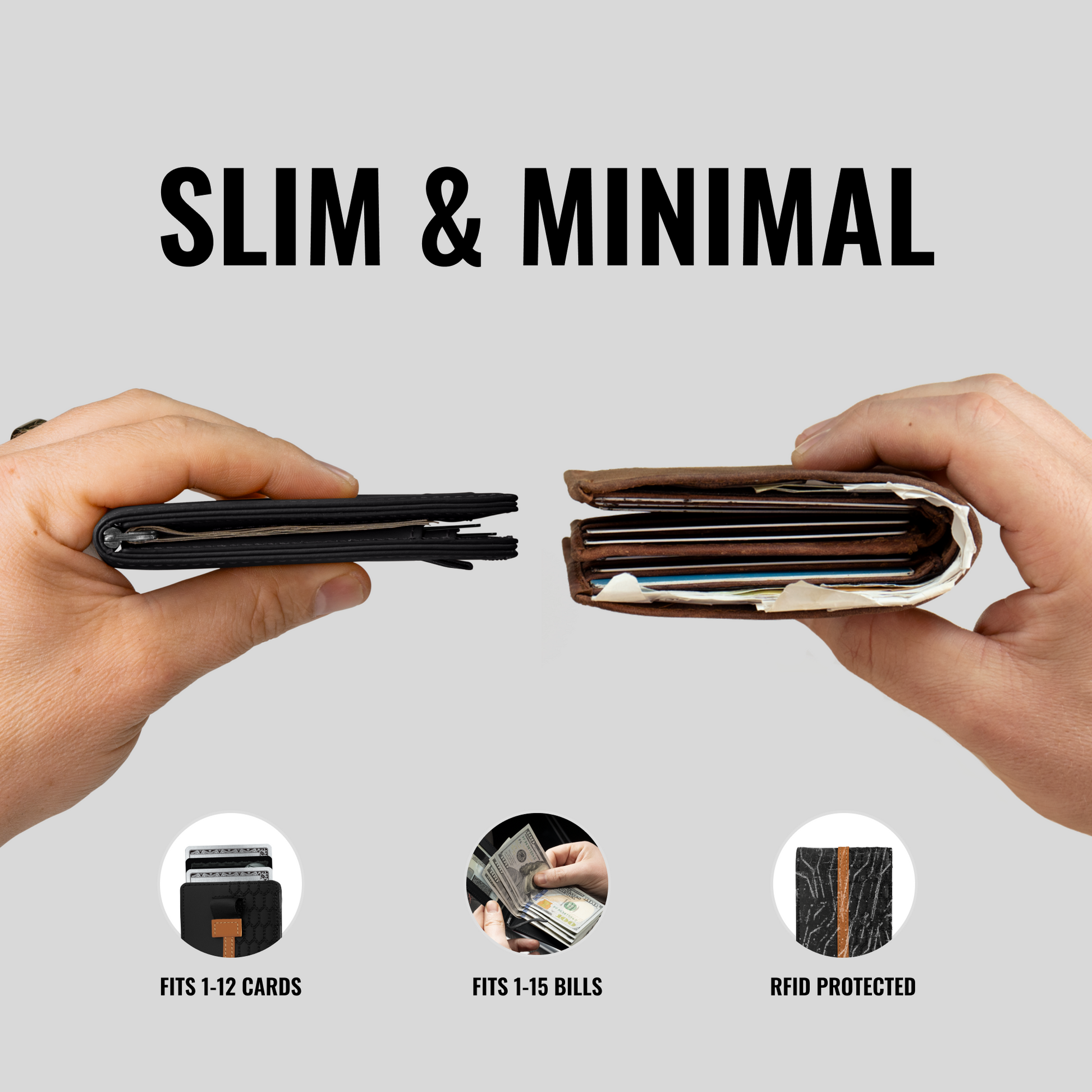 • Holds up to 12 cards and 15 bills
