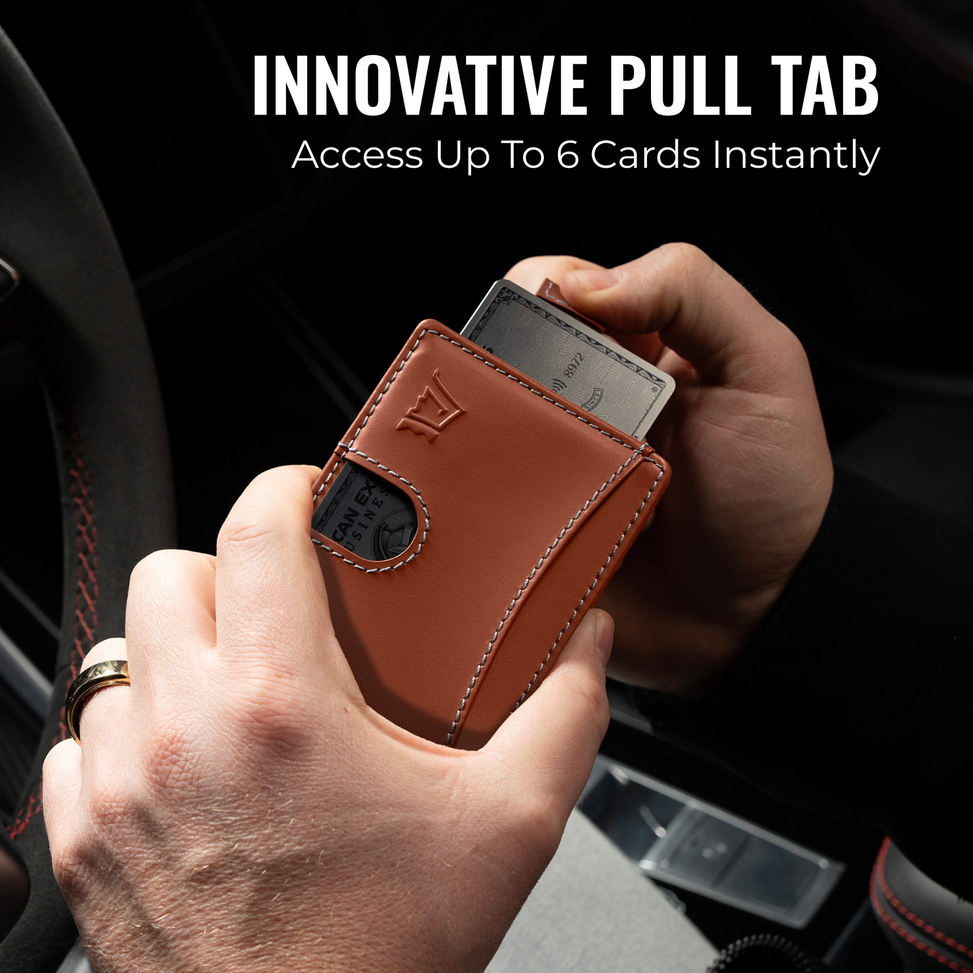 - Access up to 6 cards with the hidden pull strap
