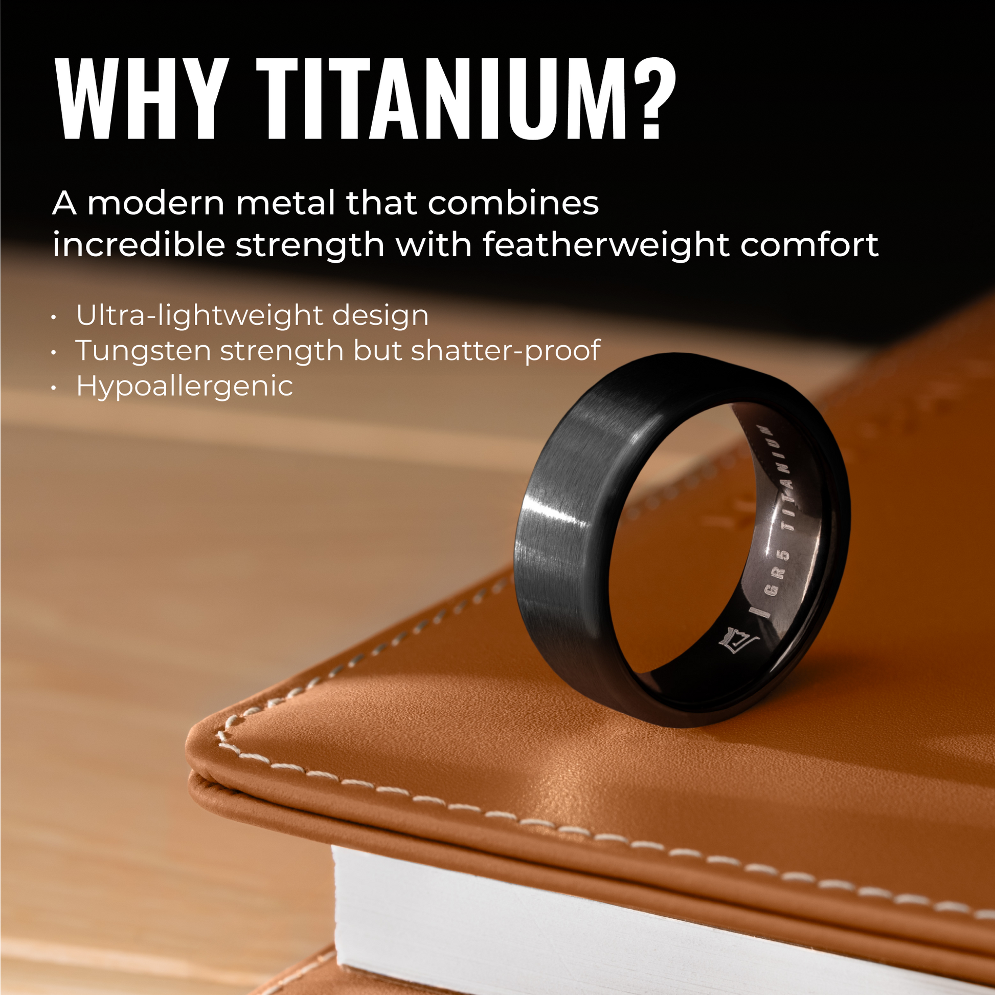 Choose aerospace-grade GR5 Titanium for lightweight strength or rare Tantalum for a dense, luxurious feel.