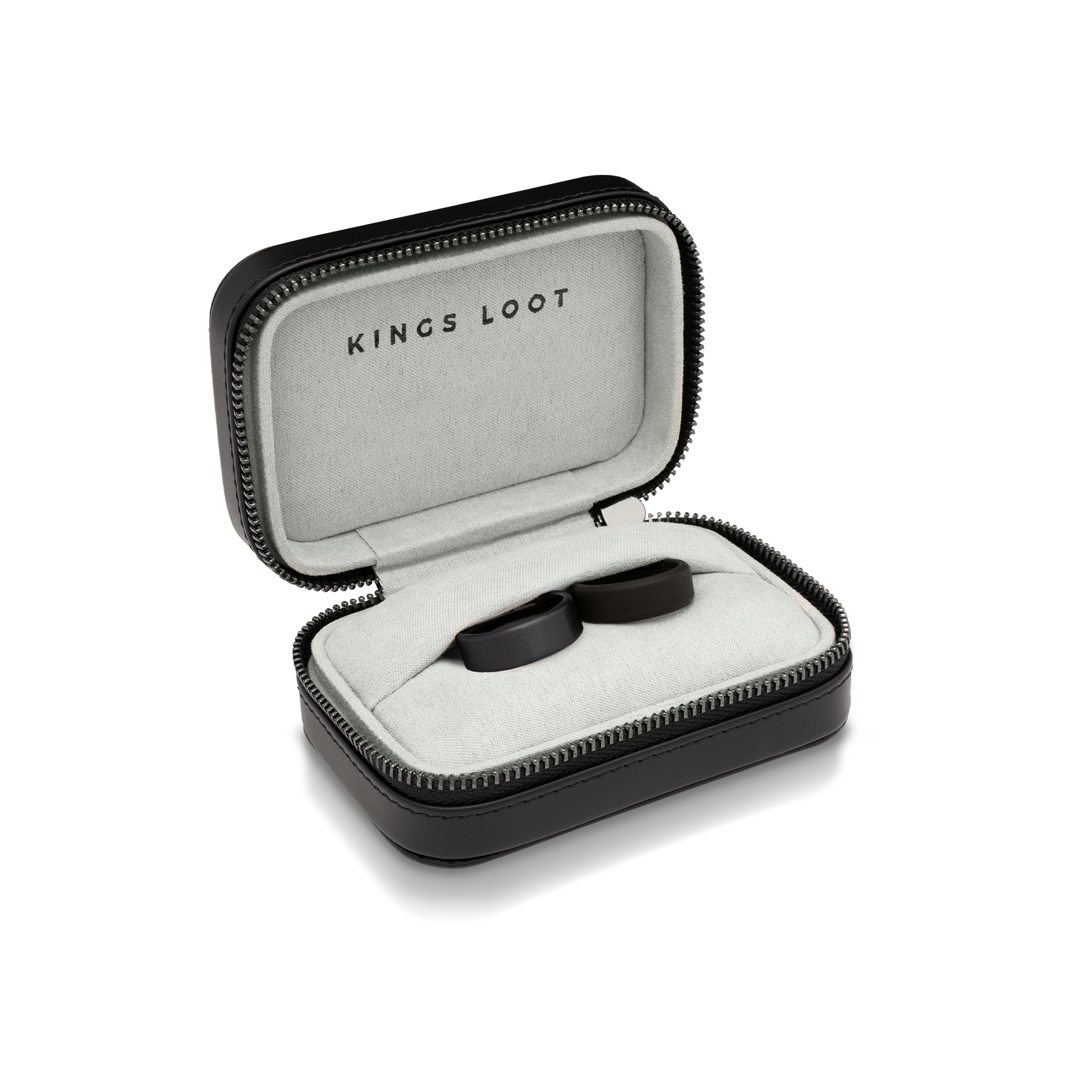 Set Includes: Premium Metal Ring, 8mm Black Silicone Ring, Leather Travel Case, Certificate of Authenticity, and Black Dust Cloth.